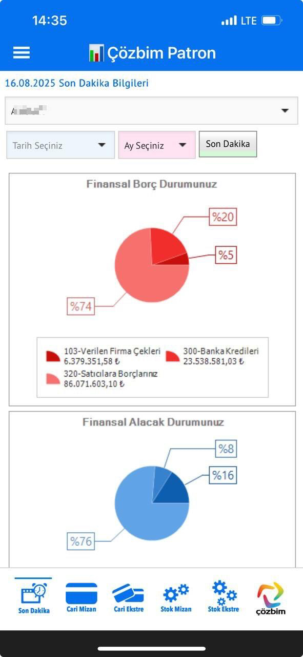 Çözbim-Patron uygulamasında günlük-aylık ve son dakika olarak yapılan,