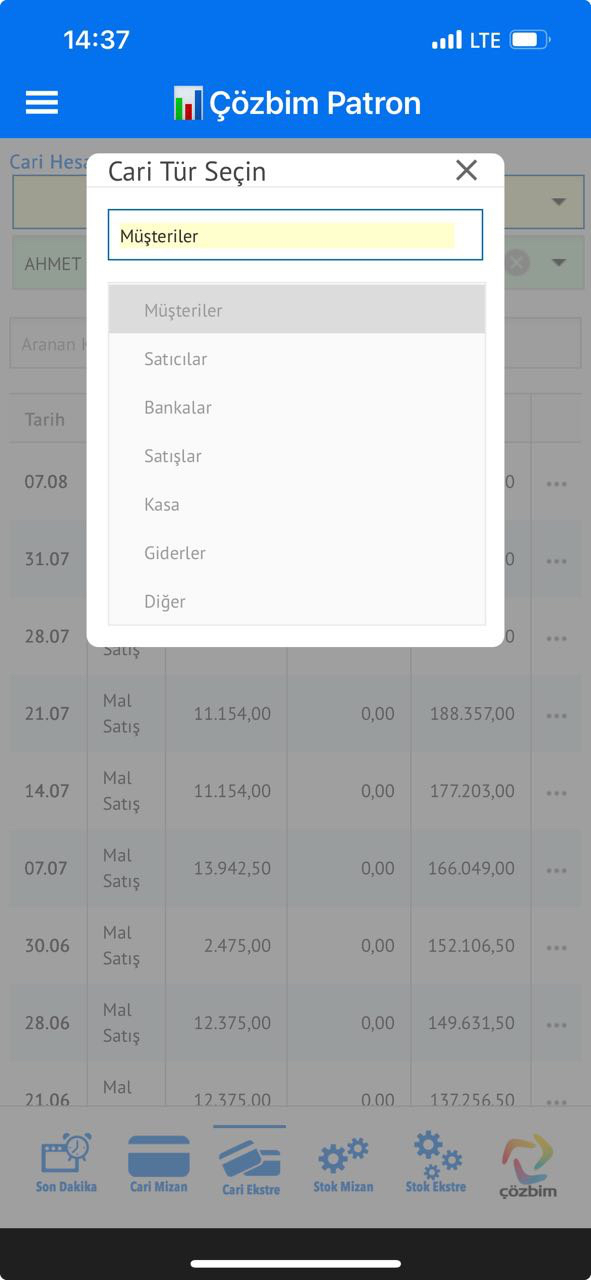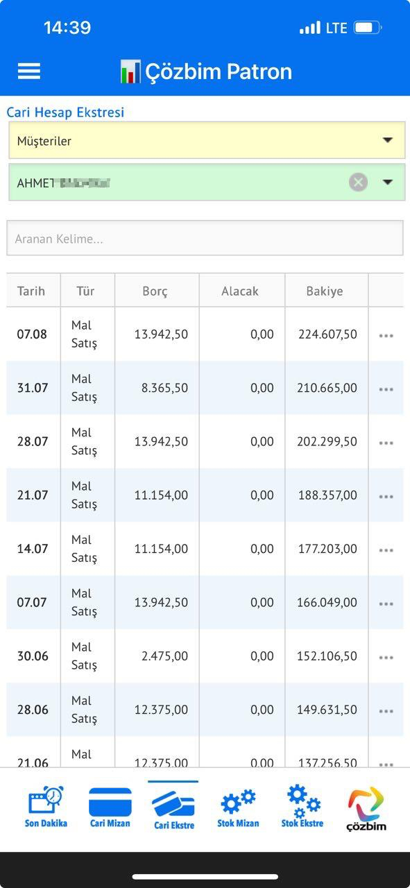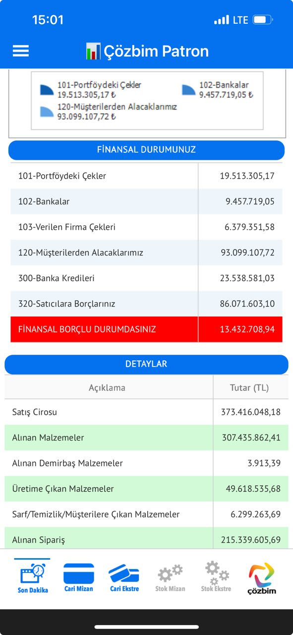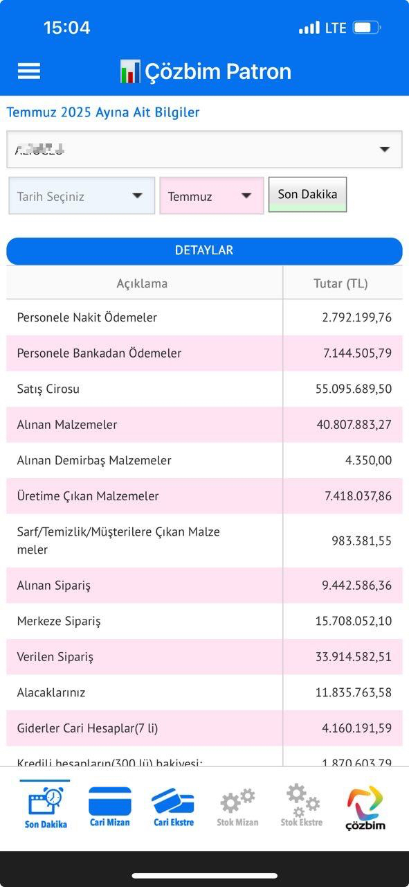 Çözbim-Patron uygulamasında günlük-aylık ve son dakika olarak yapılan,